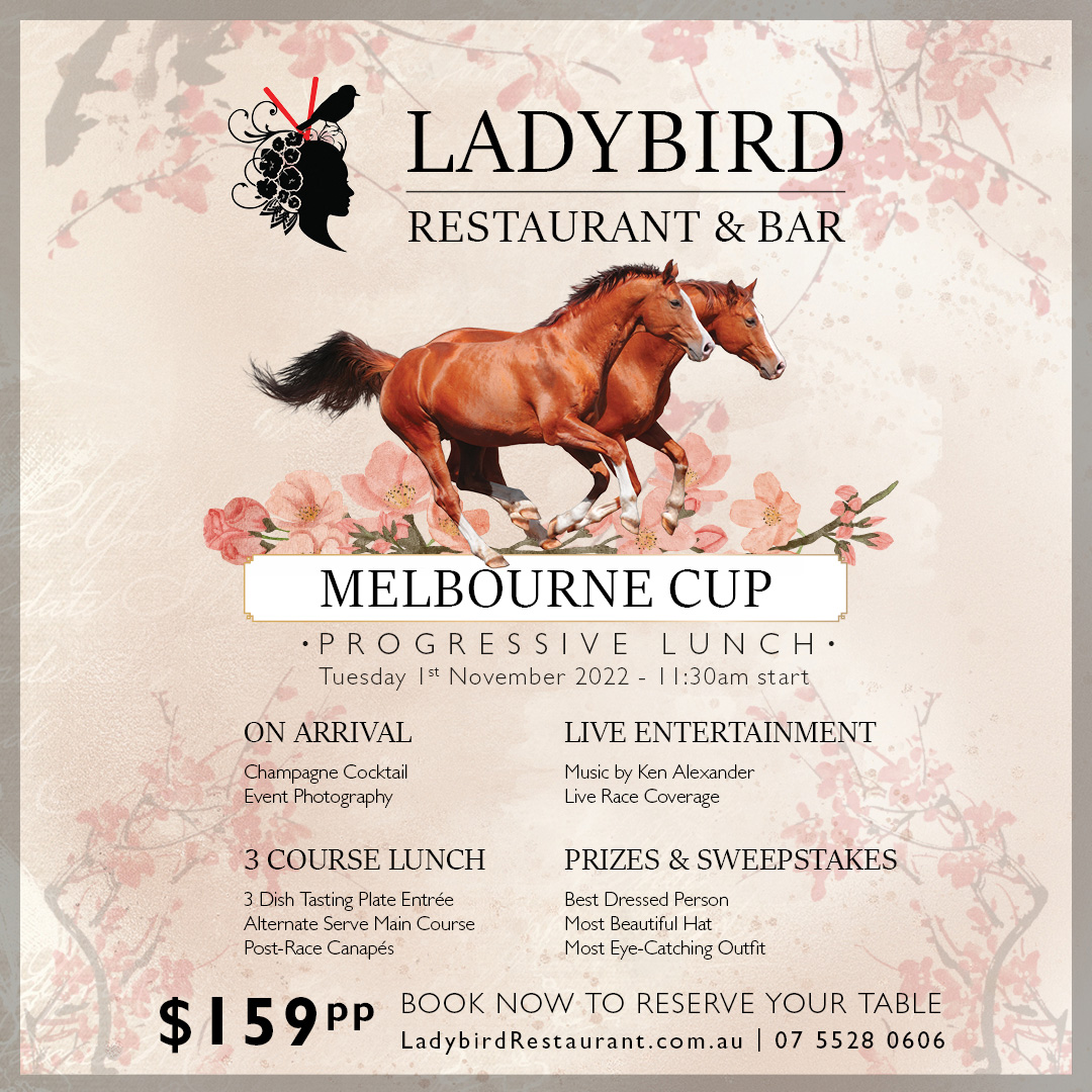 Join us for a day of fabulous food, fun and fashion at our Melbourne Cup Progressive Lunch on Tuesday the 1st of November, starting at 11:30am.